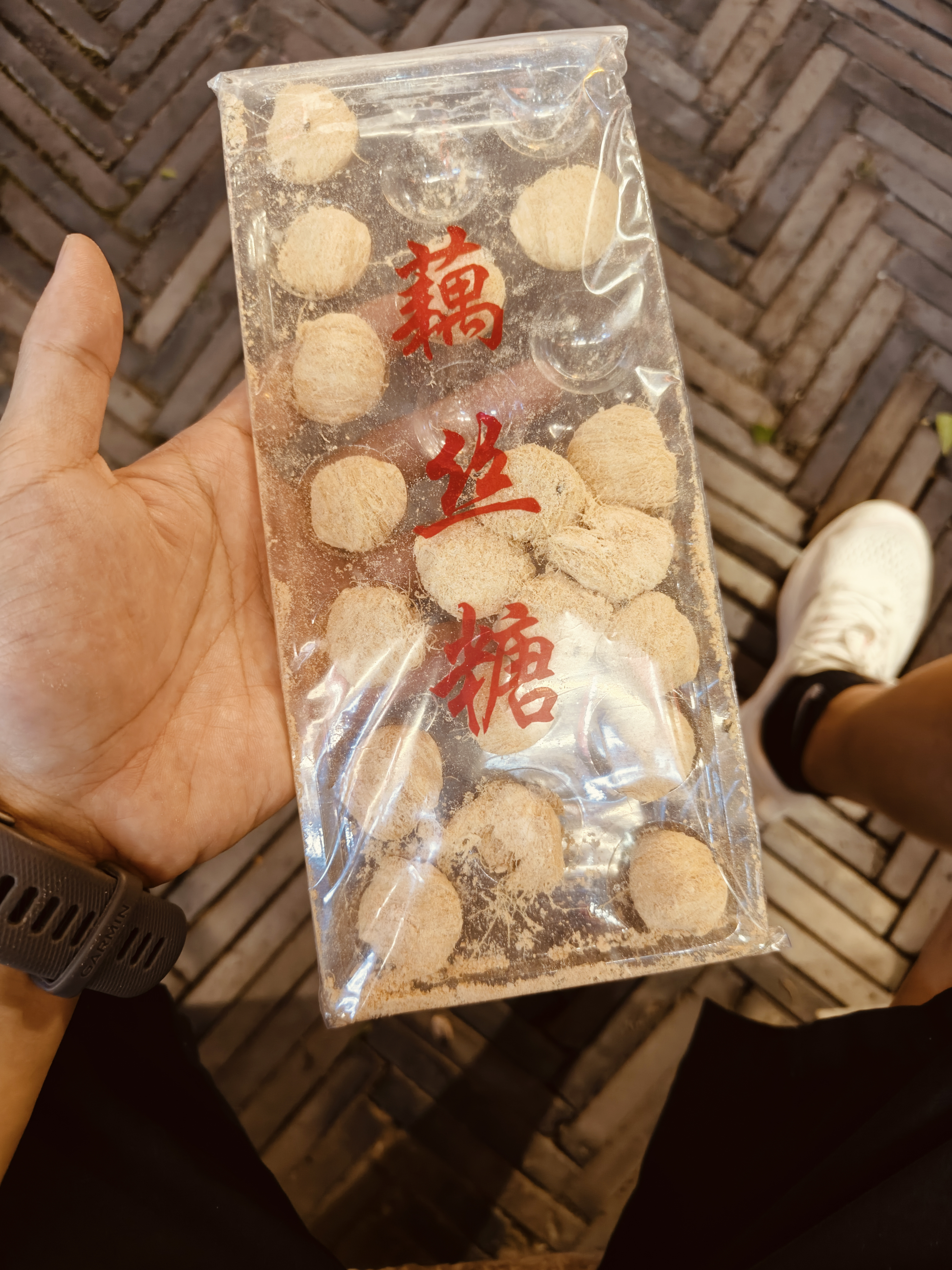 路上买了个藕丝糖补充能量,略微有点干,红糖味很浓