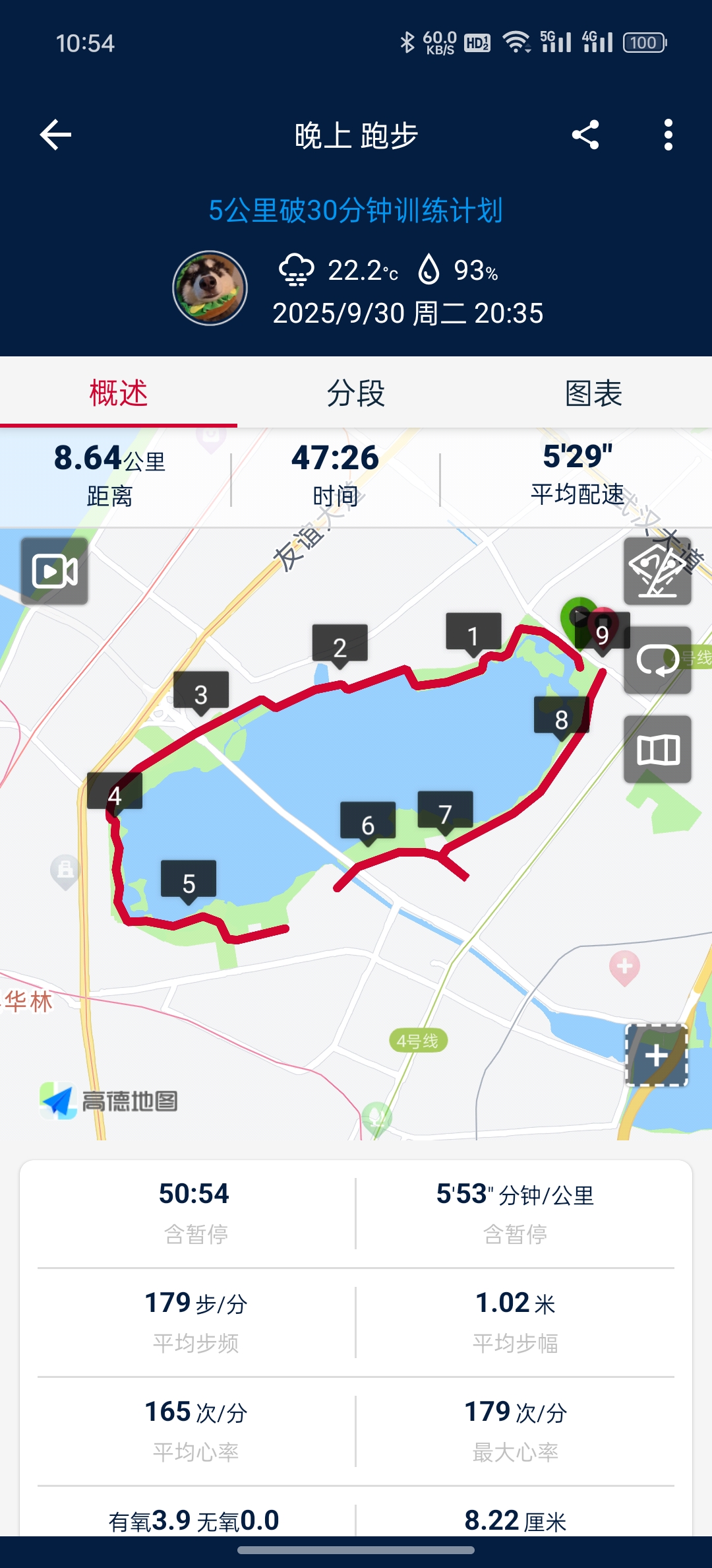 晚上去沙湖公园跑了步,公园有寄存柜,放下东西就可以开跑了,原本是在公园里跑的,结果跑着跑着跑到马路上了,中间等红绿灯的时候停表了结果还忘了开表😴😴