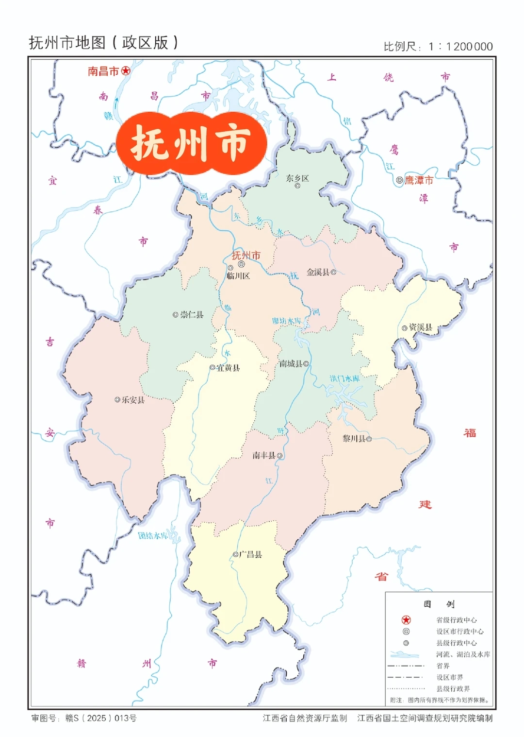 抚州分为两个市辖区:临川区、东乡区和九个县,市中心为临川区